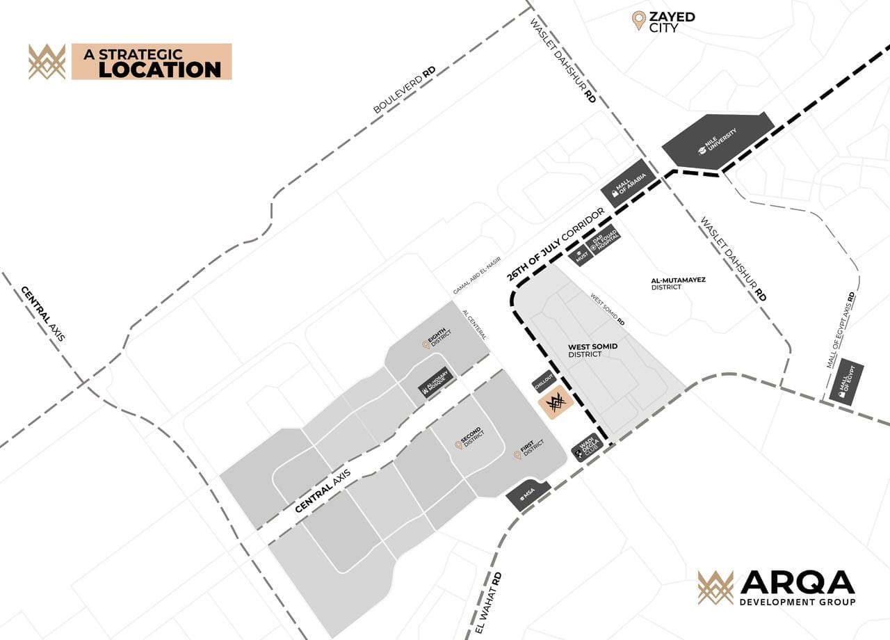 يقع مول انيكس 26 بيزنس كومبلكس في مكان متميز على محور 26 يوليو مباشرة، وهو أحد أهم المحاور الرئيسية في مدينة 6 أكتوبر، مما يوفر سهولة في الوصول للمشروع من جميع الاتجاهات. يتميز الموقع بقربه من مجموعة من المعالم الحيوية التي تضيف قيمة كبيرة للمستثمرين، ومنها: